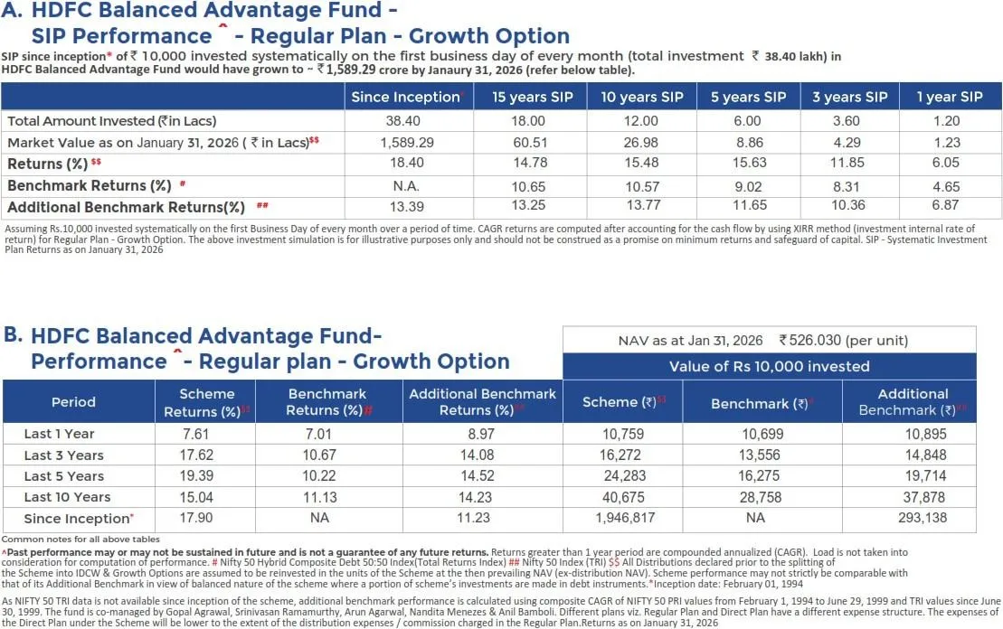 HDFC Balanced Advantage Fund, an open-ended dynamic asset allocation fund, has successfully completed 32 years since its launch in February 1994. With assets under management (AUM) of ₹1,06,820 crore, HDFC Balanced Advantage Fund reflects sustained investor confidence in its dynamic asset allocation approach. The Fund has delivered healthy returns over 3- year, 5-year, and 10-year return horizons as on January 31, 2026, across market phases.