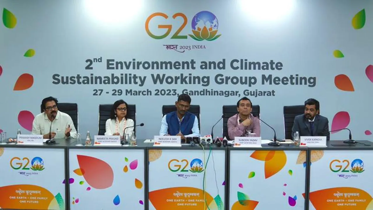 130 delegates from G20 member countries along with 11 invitee countries and 14 international organizations will take part in the Second G20 Environment and Climate Sustainability Working Group (ECSWG) meeting at Gandhinagar. The three-day (27-29 March 2023) meeting would focus on thematic areas like arresting land degradation, accelerating ecosystem restoration & enriching biodiversity; Encouraging resource efficiency and Circular economy and Promoting a sustainable and climate resilient Blue economy. Special presentations on major initiatives like Namami Gange, Climate Resilient Infrastructure, Participatory Ground Water Management, Jal Jeevan Mission, and Swachh Bharat Mission will also be made during the meeting. Smt. Darshana Vikram Jardosh, Union Minister of State (Railways & Textiles), Government of India is expected to inaugurate the meeting on 28th March.