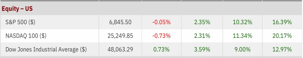 US equities moved within a narrow range amid low activity. Nasdaq 100 fell 0.7%, while DowJones rose0.7%. In the S&P 500, Financials, Industrials, and Consumer Discretionary were key positives, while Healthcare, Utilities, and Consumer Services contributed negatively.
