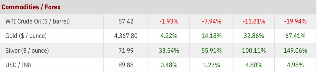 Domestic momentum remained healthy with Composite PMI at 58.9 (still firmly in expansion) and GST collections staying strong at ₹1.74 lakh cr.