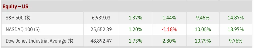 S&P 500rose 1.4%. Communication Services and Industrials contributed positively to index gains, while Financials and IT dragged the index lower.