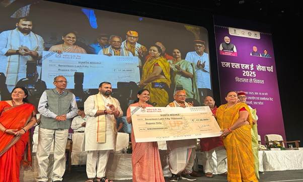 The Ministry of MSME celebrated MSME Seva Parv-2025: Virasat se Vikas from 28th to 30th September, 2025. Shri Jitan Ram Manjhi, Union Minister of MSME, Government of India, presided over the event, and Sushri Shobha Karandlaje, Union Minister of State for MSME, Government of India, inaugurated the occasion today at Rudraksh International Cooperation & Convention Centre, Varanasi, Uttar Pradesh. The event was held to bring together communities, institutions, and individuals in a collective movement of seva, cultural pride, and enhancing awareness of our heritage. More than 1500 beneficiaries of MSME schemes, including PM Vishwakarma, Khadi and Gramodyog Yojana, Prime Minister’s Employment Generation Programme (PMEGP), National SC/ST Hub Scheme, etc. attended the event. The event also featured distribution of Loan certificates to PMV beneficiaries, distribution of Margin Money subsidy to PMEGP beneficiaries and distribution of toolkits to GVY beneficiaries.