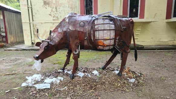 Cow Sculpture made from scrap (Waste to Wealth initiative) by MGIRI, Wardha at their campus during Special Campaign 5.0 |