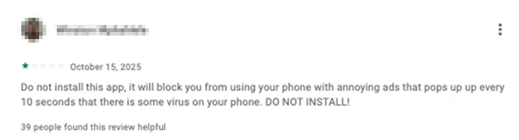 Always check user reviews — if you see warnings like “don’t install,” “this app acts like a virus,” or consistently low ratings, it’s best to stay away.