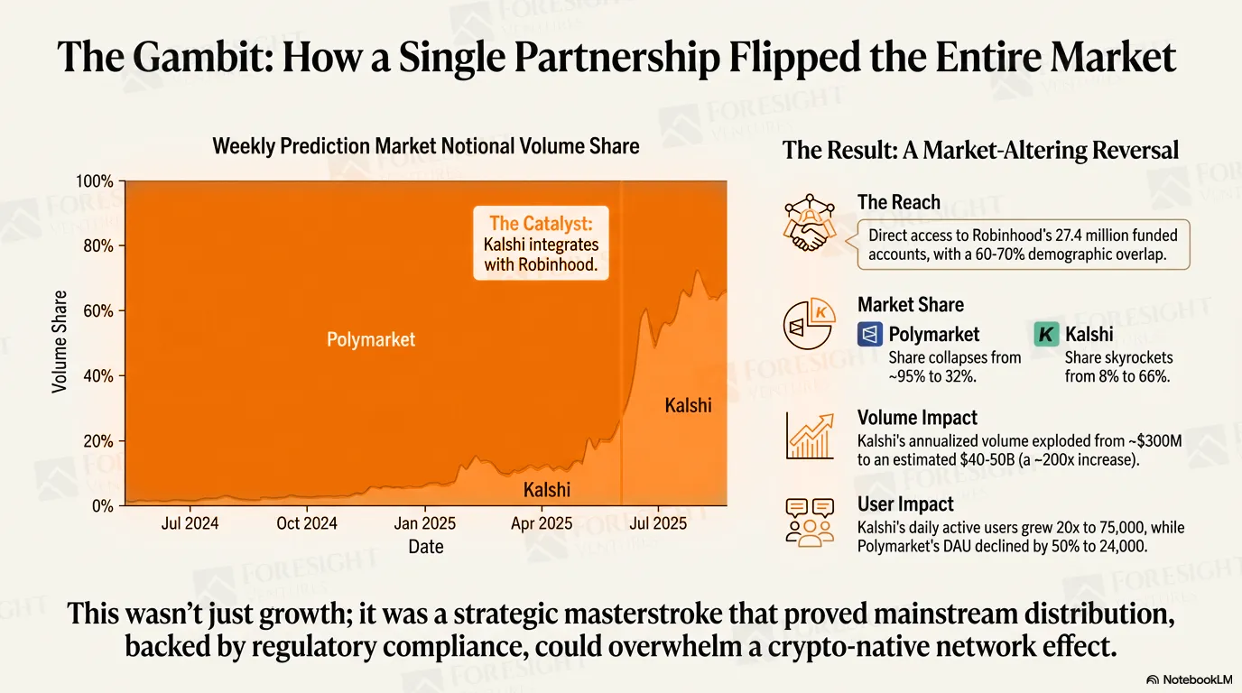Kalshi’s market share increased from approximately 8% to 66% within months